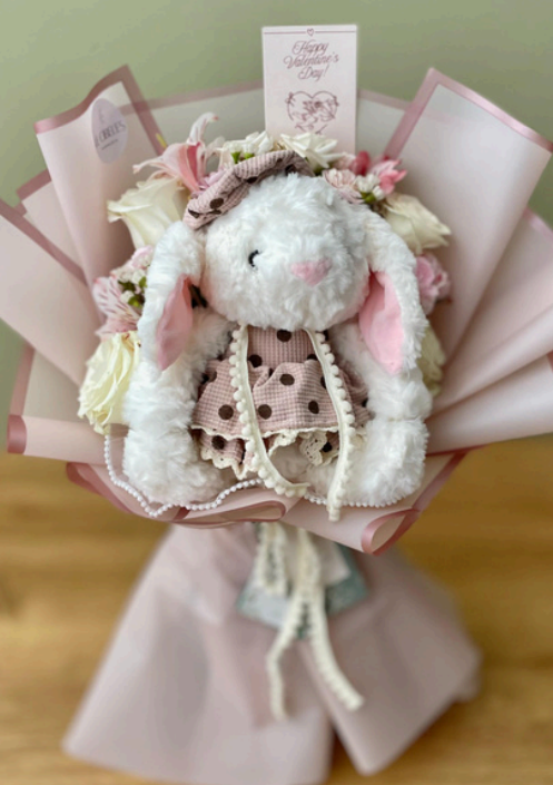 Un sueño de bouquet, flores variadas y como protagonista una tierna conejita